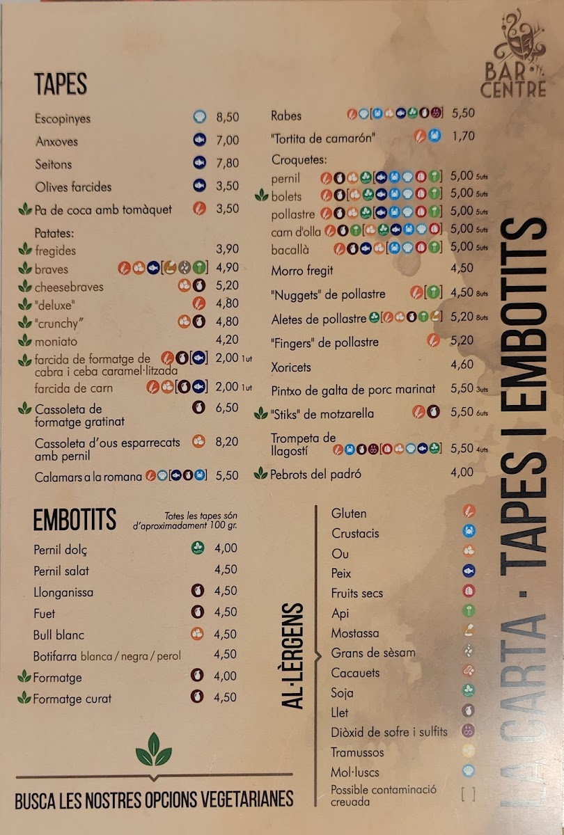 With an extensive selection of teas and the option to catch up on news or sports, Bar Centre serves as a relaxing escape from daily life. Accompanied by soothing Catalan music sung by the wait staff, every visit promises joy and indulgence. Whether you're looking for a quick bite or a leisurely meal, Bar Centre is a must-visit destination.